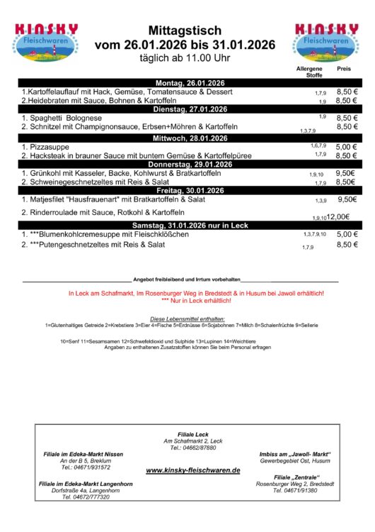 aktueller Mittagstisch